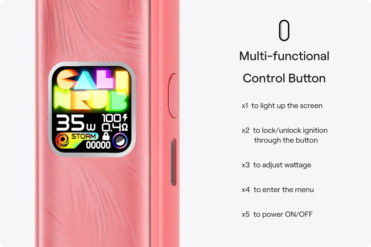Η συσκευή διαθέτει ευανάγνωστη οθόνη TFT HD 0,85” με έγχρωμη απεικόνιση και δυνατότητα αλλαγής θέματος, προσφέροντας μια προσωπική πινελιά στο στιλ. Η ενεργοποίηση μέσω εισπνοής εξασφαλίζει απλή και φυσική χρήση χωρίς κουμπιά.