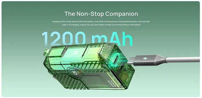 Η μπαταρία 1200mAh εξασφαλίζει αδιάκοπη χρήση όλη μέρα, ενώ η φόρτιση μέσω Type-C 1A προσφέρει γρήγορη και αξιόπιστη επαναφόρτιση.