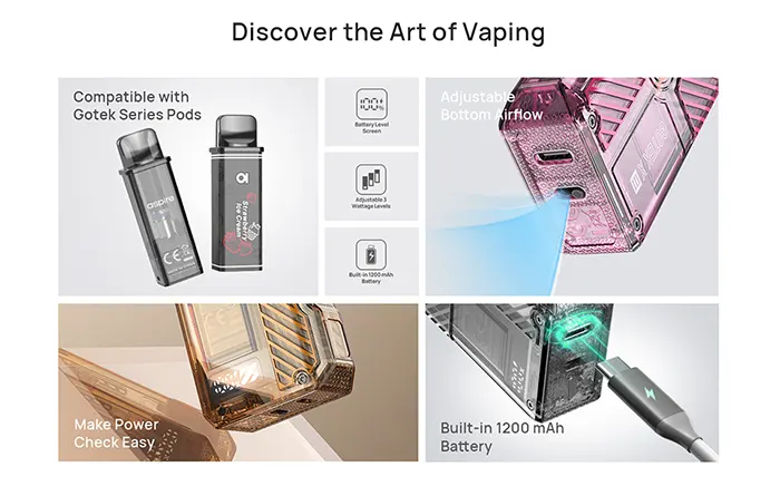 Το Gotek X III φέρνει νέα διάσταση στην καθημερινή εμπειρία ατμίσματος, με κομψό ημιδιαφανές design, αναβαθμισμένη meshed coil αντίσταση και εύχρηστο σύστημα πλαϊνής αναπλήρωσης. Προσφέρει πλούσια γεύση, ομαλή απόδοση και μεγάλη ευκολία στη μεταφορά, καθιστώντας το ιδανική επιλογή για όσους θέλουν στυλ και ουσία σε μια compact συσκευή pod.