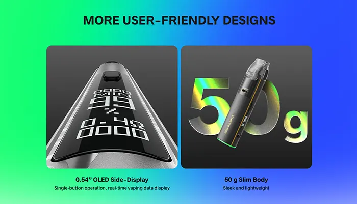 ECO Mode: το οποίο προσαρμόζει δυναμικά την ισχύ με βάση τα άτμιστικά σου πρότυπα, εξοικονομώντας μπαταρία και υγρό χωρίς θυσία στη γεύση.